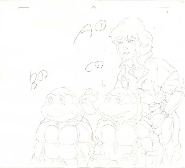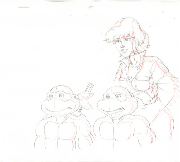 2 TMNT Original Production Drawings – April, Raphael and Donatello