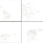 4 original Teenage Mutant Ninja Turtle production drawings. These drawings depict frames from a scene in a Teenage Mutant Ninja Turtles cartoon episode. These frames features April, Raphael & Donatello. Produced by Murakami-Wolf-Swenson Studios, 1987. Presented sleeved with a Certificate of Authenticity by Classic Moments. Production Notes. 10×11