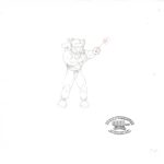 An original Teenage Mutant Ninja Turtle production drawing. This drawing was used for a frame from a scene in a Teenage Mutant Ninja Turtles cartoon episode. This frame features 3 Turtles and Casey Jones. Is produced by Murakami-Wolf-Swenson Studios, 1987.  Includes a Certificate of Authenticity by Classic Moments. 12.5×10.5  Bears the MWS seal.