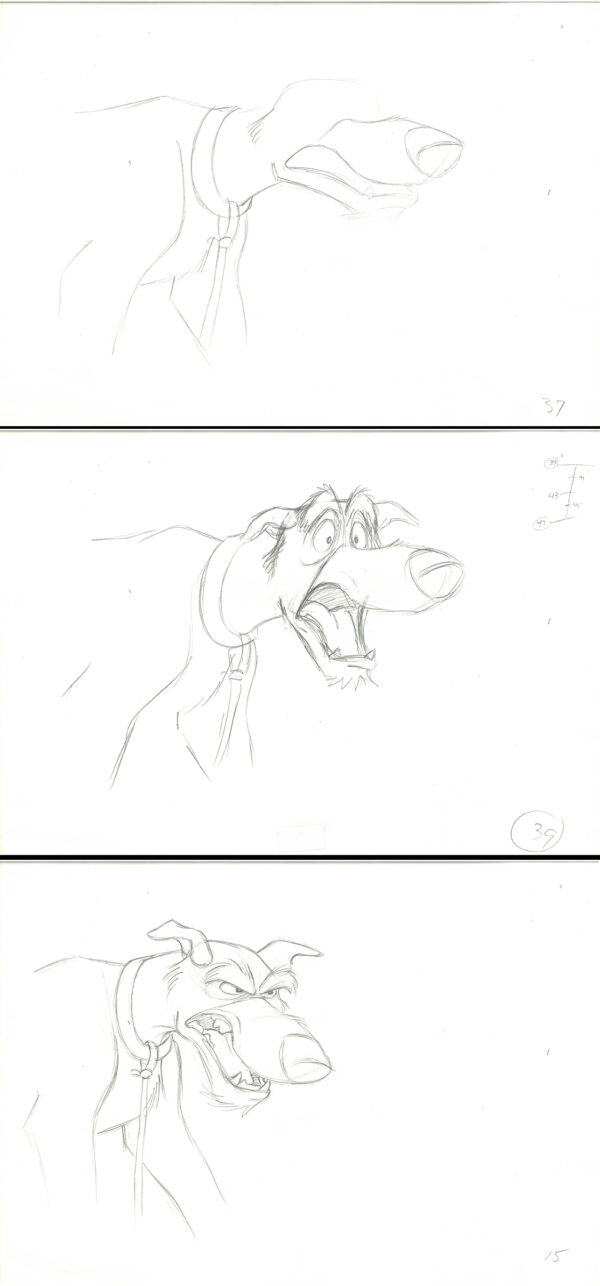 Chief – 3 Original Production Drawings from the Walt Disney 1981 Movie “The Fox and the Hound”