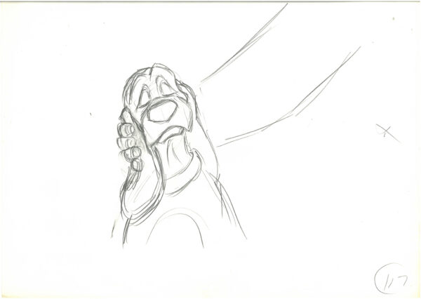 2 Original Production Drawings of Chief from the 1981 Walt Disney movie “The Fox and the Hound.” The movie tells the story of the unlikely friendship between the Fox (Tod) and the Hound (Copper) as they grow up to realize they are supposed to be enemies. Tod voiced by Mickey Rooney and Copper voiced by Kurt Russell. Production notes present on both drawings. 12.5 x 15.5