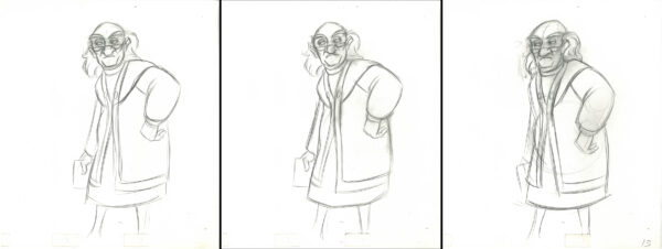 3 Original Production Drawings of Dalben from the 1985 Walt Disney movie “The Black Cauldron.” The movie a dark fantasy film based on The Book of Three and The Black Cauldon by Lloyd Alexander which are based on Welsh Mythology. Production notes present on both drawings. 12.5 x 15.5