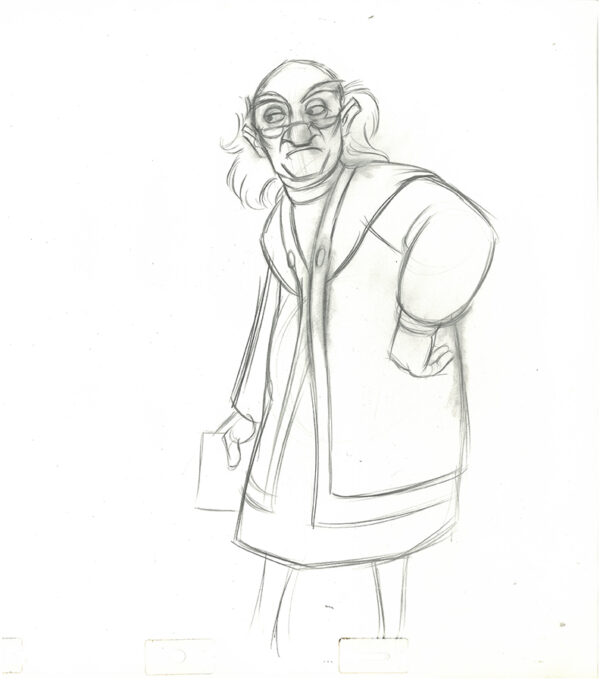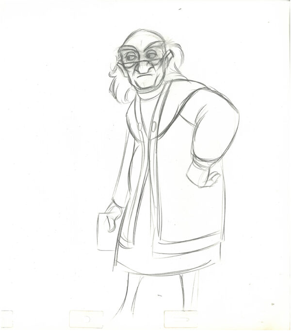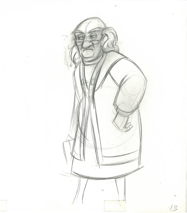 2 Original Production Drawings of Dalben from the 1985 Walt Disney movie “The Black Cauldron.” The movie a dark fantasy film based on The Book of Three and The Black Cauldon by Lloyd Alexander which are based on Welsh Mythology. Production notes present on both drawings. 12.5 x 15.5