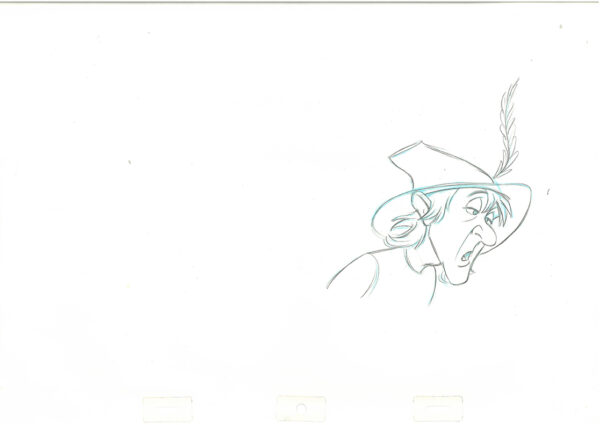 2 Original Production Drawings of Fflewddur Fflam from the 1985 Walt Disney movie “The Black Cauldron.” The movie a dark fantasy film based on The Book of Three and The Black Cauldon by Lloyd Alexander which are based on Welsh Mythology. Production notes present on both drawings. 12.5 x 15.5