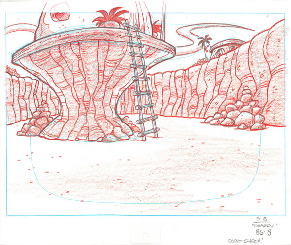 Tags: Barney Rubble, Fred Flintstone, Jungle, Production Drawings, Quarry, Scott Shaw, Signed, Virtual Pebbles