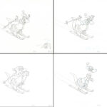 4 original production drawings of Dino. These were used in the Hanna-Barbera TV Commercials “Flintstones Fruity Pebbles,” episode Troll, which aired in the 1980’s. Produced by Playhouse Pictures Hollywood, created by cartoonist and animator Scott Shaw. Playhouse Pictures, founded in the 1950’s produced many well-known animation commercials, promotions and TV Openings, such as Hee-Haw, Rice Krispies, and Playboy. Includes COA