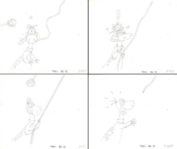 Flintstones -4 Original Production Drawings-Dino- Episode Troll