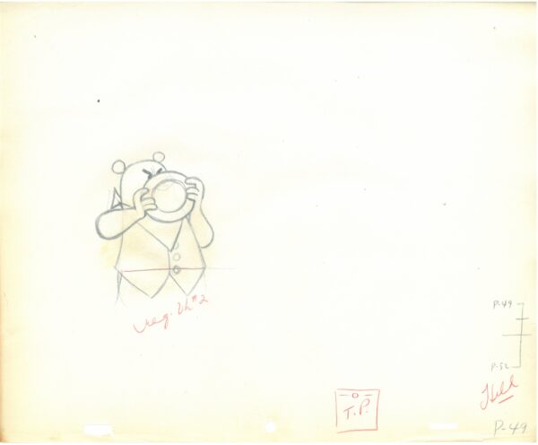 Pulled from the Playhouse Productions, Hollywood archives, FOUR Original Drawings from a Playhouse Productions Commercial. Playhouse Pictures, founded in the 1950’s produced many well-known animation commercials, promotions and TV Openings, such as Hee-Haw, Rice Krispies, and Playboy. These drawings contain production notations.