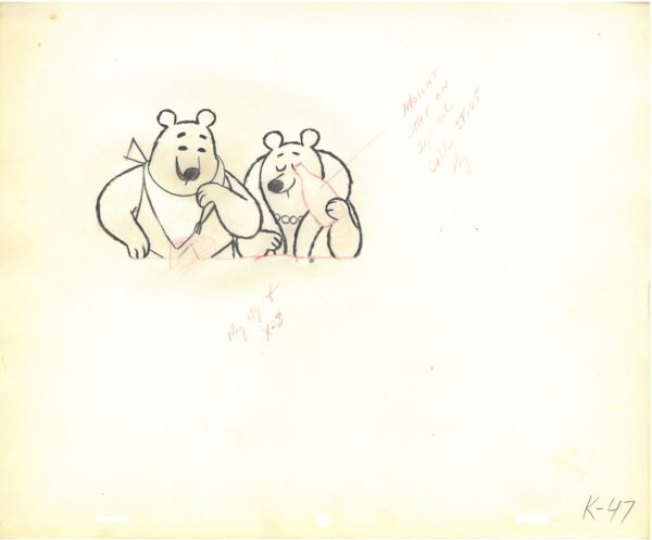Pulled from the Playhouse Productions, Hollywood archives, FOUR Original Drawings from a Playhouse Productions Commercial. Playhouse Pictures, founded in the 1950’s produced many well-known animation commercials, promotions and TV Openings, such as Hee-Haw, Rice Krispies, and Playboy. These drawings contain production notations.