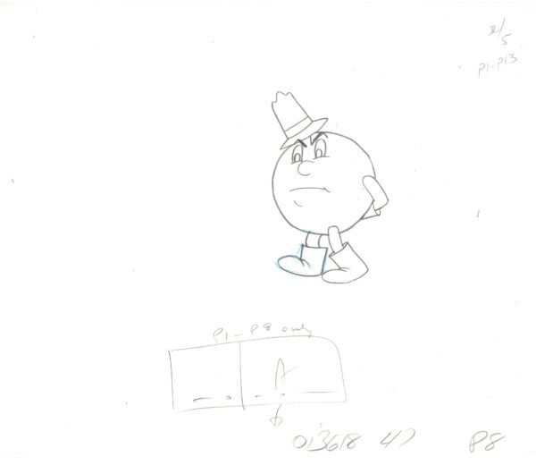 An original Pac-Man multi-cel production set-up of Pac-Man with matching drawing and official Hanna-Barbera Seal that was used in the TV Show “Pac-Man.” The Pac-Man TV Series was released in 1982 as a part of the Saturday Morning ABC line-up. This is a part of the Hanna-Barbera Classic Collection. Presented sleeved with COA. 10.5 x 12.5
