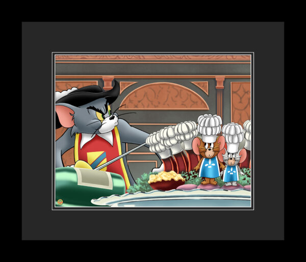 This fine art 20×24 deluxe framed giclee is entitled “The Two Musketeers” featuring Tom and Jerry.  This short, created by Bill Hanna & Joe Barbera was released in 1952. The Two Musketeers is set in the 17th century. Tom is a soldier for the King’s Castle with the job of protected the food. The two musketeers set out to make this a very miserable job for Tom. This giclee is limited to 500 hand-numbered pieces.  Is licensed and comes with COA